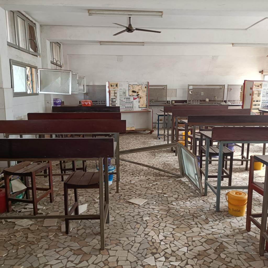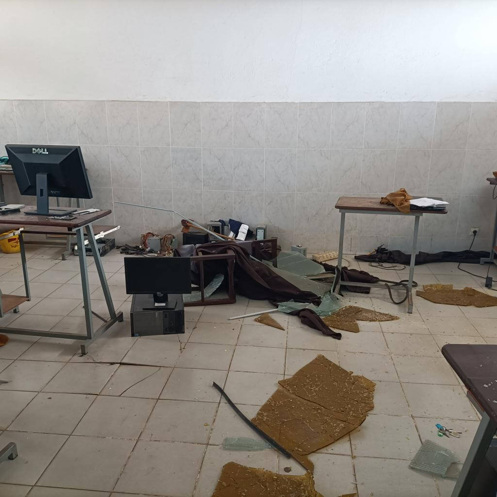 La onda expansiva de la explosión alcanzó con violencia las instalaciones del centro, afectando gravemente sus infraestructuras, destrozando puertas, ventanas, techos y equipos electrónicos. Actualmente, no es posible retomar las clases con normalidad, puesto que los techos están semiderruidos, los equipos electrónicos muy dañados y resulta peligroso permanecer dentro de las aulas.