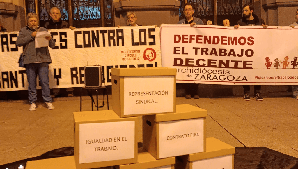 Hoy compartimos nuestro Circulo del Silencio con nuestras compañeras y compañeros de Iglesia por un Trabajo Decente para reivindicar el derecho de todas las personas a un trabajo digno y denunciar la precariedad y la mejora de las condiciones laborales.