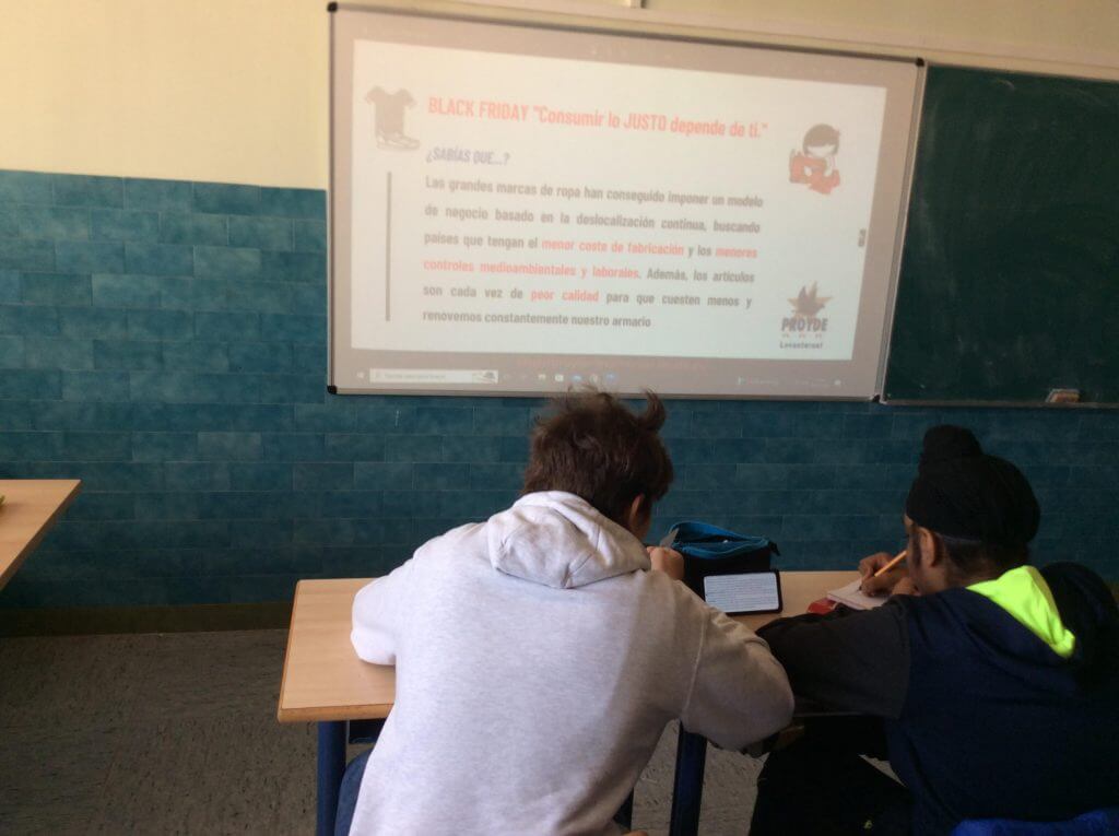Durante la penúltima semana de noviembre el equipo docente de la etapa de Secundaria del Colegio La Salle de Paterna ha llevado a cabo una acción de sensibilización alrededor del “Black Friday” y el Consumo Responsable. Aprovechando el material (carteles y trípticos) que editó y confeccionó nuestra ONGD PROYDE, entorno a este fenómeno consumista globalizado, el profesorado intenta concienciar en un consumo más consciente, y para que el alumnado del centro educativo no caiga en un consumo desaforado.