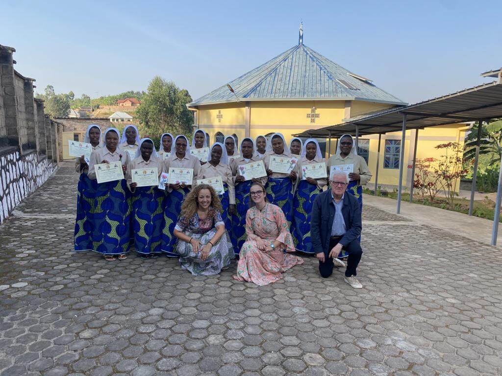 Diariamente, con el rezo de laudes a las 6:00 de la mañana y vísperas a las 18:00 horas, hemos compartido momentos importantes de oración en la capilla. Principalmente, a través de la declamación del rosario, adoración al Altísimo y eucaristía los martes, jueves, viernes y domingo en diferentes lenguas…francés, kinyarwanda e inglés. Incluso nos agasajó con una visita a la casa de las Hermanas, el Sr. Obispo, Monseñor Baltasar, celebrando Eucaristía, posterior cena y entretenimiento con nosotras y las hermanas. Aprovechamos la ocasión, además, para despedir a la Hermana Gudule, de origen malgache, a quien envían a Burkina Faso. Destacamos su actitud optimista ante este compromiso y la sonrisa, bailes y cantos que acompañaron su despedida, tras cerca de 6 años de misión en este país.