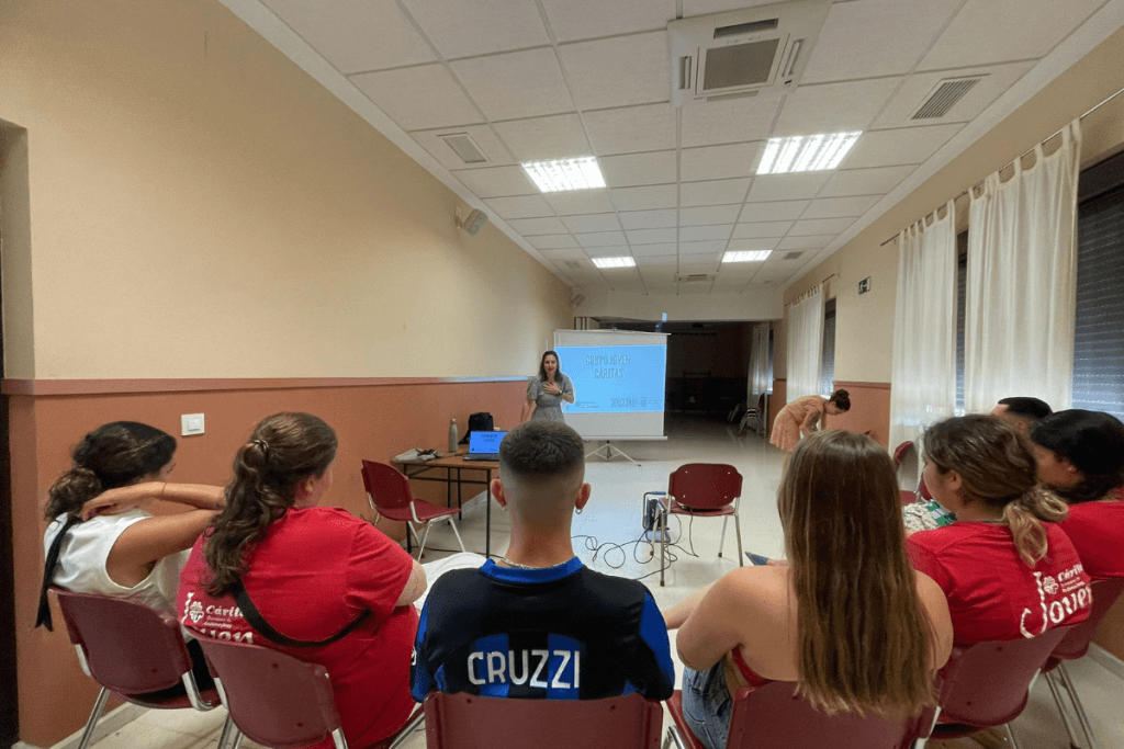 Pero más allá del contenido teórico, el fin de semana fue también una oportunidad para reflexionar juntas, compartir inquietudes, escuchar experiencias de otras personas y construir así un ambiente de confianza y aprendizaje mutuo. Uno de los momentos más significativos fue la “velada consciente”, en la que se trabajaron los cuatro pilares que guían nuestras experiencias de voluntariado: la compasión, la humildad, el servicio y la solidaridad sin fronteras. Hablamos de la compasión como un “superpoder” capaz de provocar cambios estructurales, recordando que la pobreza no es un accidente, sino el resultado de decisiones humanas y sistemas injustos que debemos cuestionar y transformar.