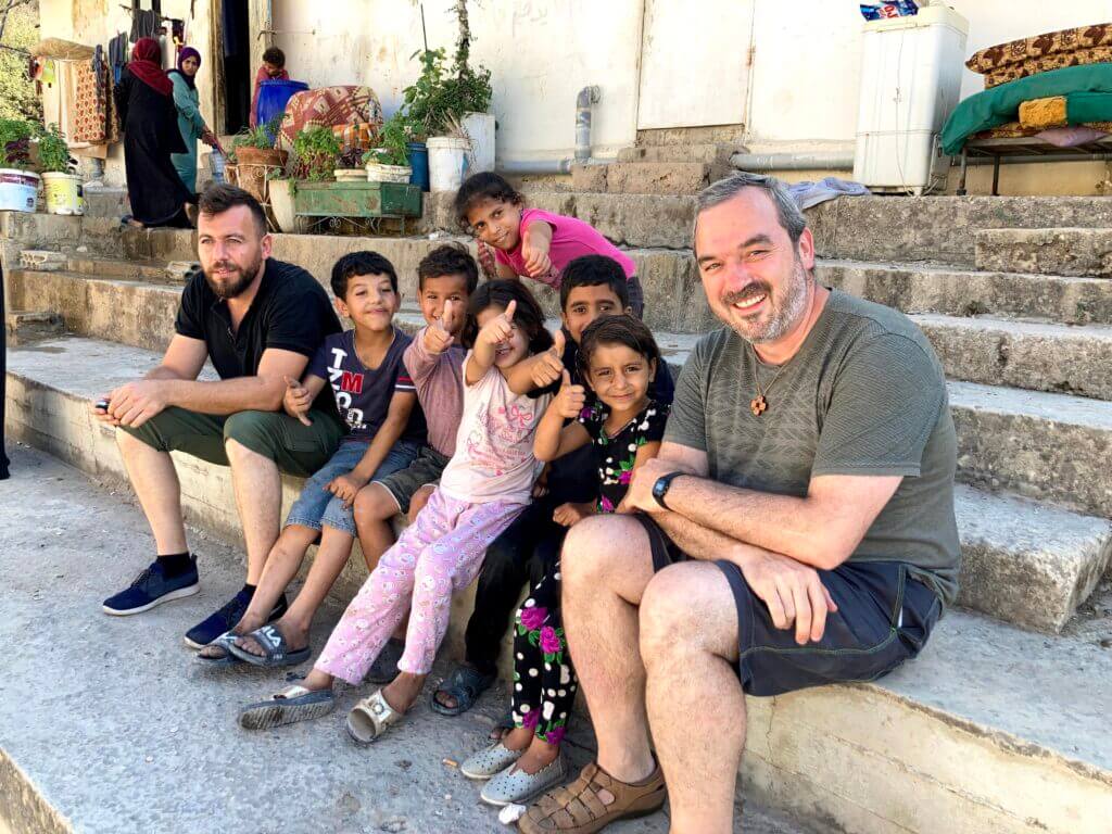 El otro momento ha sido esta tarde cuando cuatro personas hemos ido a visitar uno de los “shelter” o campos de refugiados, que es donde se concentran muchos sirios en edificios abandonados y barracas improvisadas. Al llegar nos han reconocido y han empezado a salir niños de todas partes corriendo y gritando de alegría. Se han acercado a nosotros y han venido algunos adultos también que han aprovechado para hablar con los educadores. Mientras tanto los niños se han puesto a cantar el himno de la colonia que acaban de terminar hace unos días y la canción “fra” de Fratelli que tanto les gusta. Yo me sentía abrumado por las imágenes que estaban entrando en mi retina, por el cariño mostrado por los niños que al saber que era un nuevo Hermano me daban la mano y me hablaban de miles de cosas que no comprendía. Yo me sentía un poco paralizado, pero me senté en unas gradas que había y empecé a comunicarme con ellos con juegos de palmas, con las miradas, con la cercanía de los gestos… Ha sido un momento muy sencillo pero que me ha llegado al alma. Cuando subía de nuevo al coche para regresar tenía las entrañas encogidas y humedecidos los ojos. Hoy como ayer, el Señor me visita en los niños pobres y me renueva en mi vocación de Hermano. Solo me queda terminar diciendo dos expresiones que frecuentemente me repito internamente como un mantra: “aquí estoy” y “gracias.