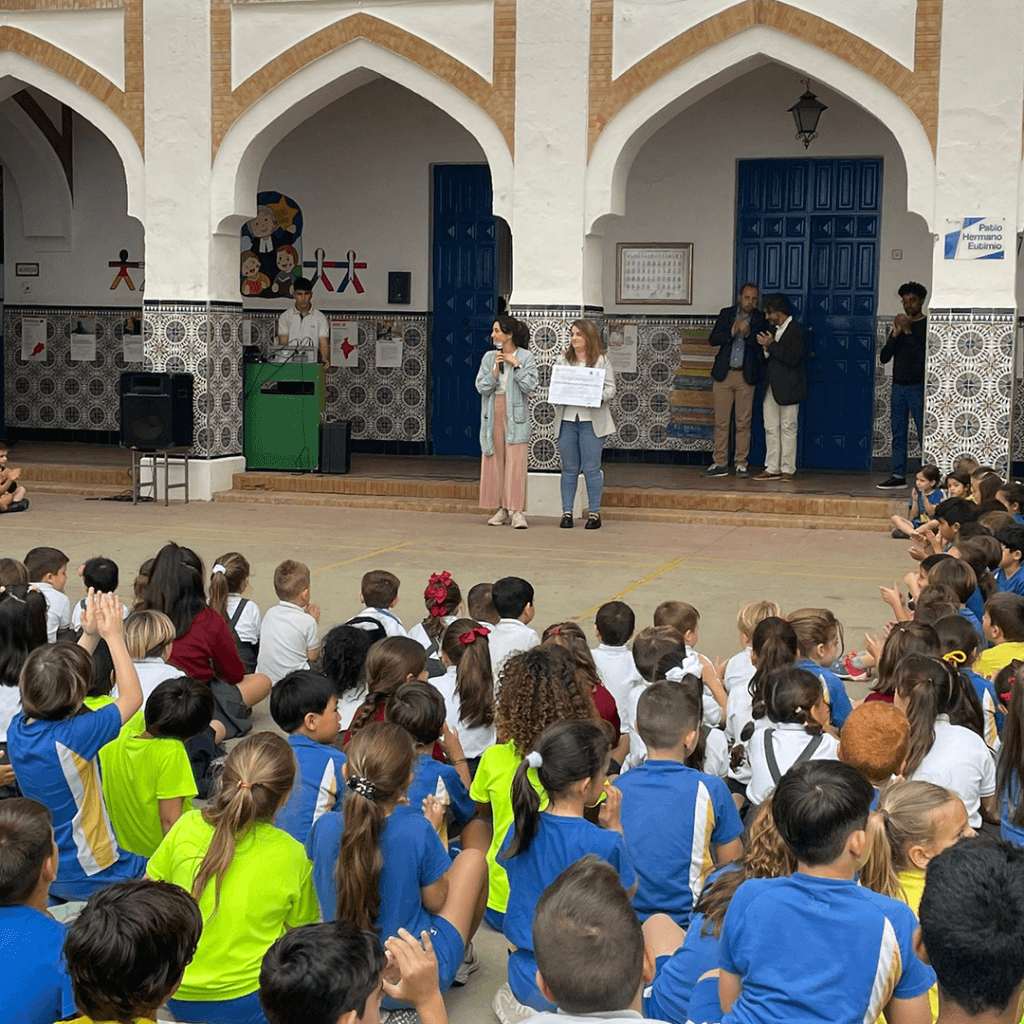 Para ello Carla, la responsable de Comercio justo a nivel nacional y Leticia Delegada Territorial de Andalucía y Melilla se desplazaron a ambos colegios para acompañar a las comunidades educativas en este momento tan importante.