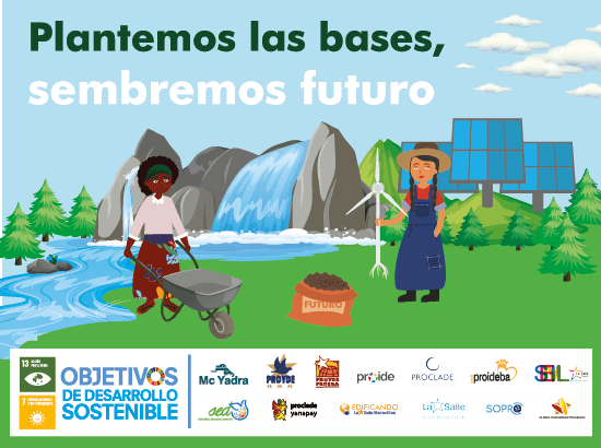 En este marco y prosiguiendo con el trabajo iniciado desde hace varios años, las entidades lasalianas — Edificando CN, PROIDE, PROYDE-PROEGA, PROIDEBA, Solidarietà Internazionale (Italia), Sopro (Portugal), Semil (Francia), La Salle International (EEUU, Canadá) y PROYDE — además de SED, Proclade y Proclade Yanapay y gracias al apoyo económico de la empresa McYadra, presentamos la campaña de sensibilización anual —Plantemos las bases, sembremos futuro—en la que invitamos a reflexionar sobre un tema de interés social en particular (empobrecimiento, hambre cero, igualdad de género, educación de calidad…).