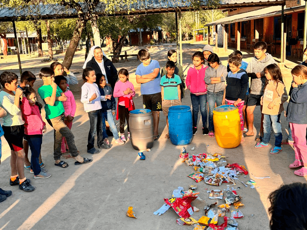 Pero, no solo nosotras hemos podido enseñar a los alumnos en los distintos talleres que habíamos preparado desde España, sino que ellos también han sido nuestros maestros intentando enseñarnos su lengua: el guaraní (con poco éxito jeje) y su forma de vida: el trabajo en el huerto, el cuidado de los animales, la importancia del agua, el taller de carpintería, la panadería, la lavandería… Cada día ha sido un aprendizaje, hemos compartido tiempos de juegos, de aula, risas, llantos, abrazos, enfados…
