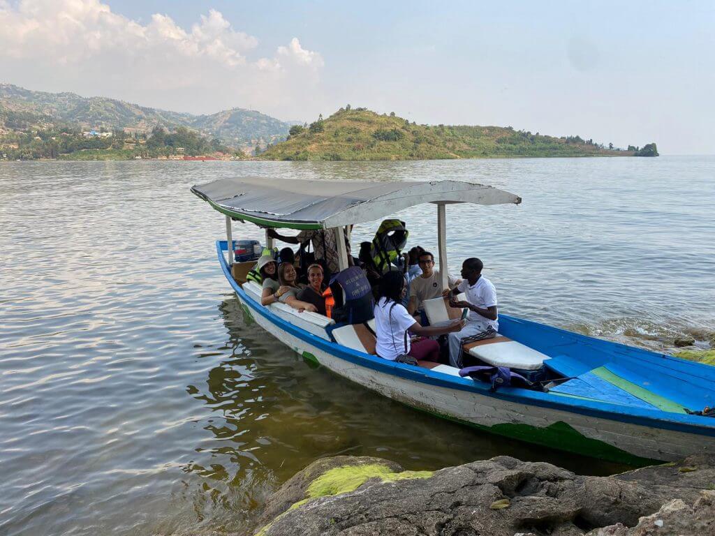 Posteriormente, se acercaron a la frontera con el Congo, pero se quedaron en tierra de nadie. Al final, todos juntos pusieron rumbo hacia el Lago Kivu, y cerca de allí pudieron comer un delicioso pescado con patatas fritas que disfrutaron muchísimo, y aprovecharon para subir a una barca y dar una vuelta al famoso lago africano. Más tarde, fueron a una playa donde se pudieron bañar, aunque alguno prefirió sentarse en la playa y descansar. El viaje al Lago Kivu, fue largo y agotador, por lo lejos que estaba y porque tuvieron que superar algunos controles de la policía ruandesa.